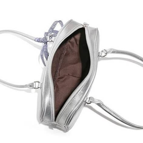 華やかな光沢感が目を引くシルバーカラーのショルダーバッグ。程よいコンパクトサイズでデイリーユースに最適ながらも、エレガントなシルエットがコーデのアクセントになります。可愛らしいチェックリボンがワンポイントになり、さりげない甘さを演出します。