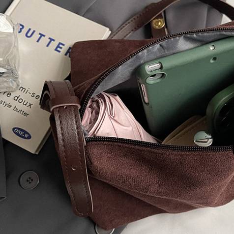 上品なスエード調素材で仕上げたワンショルダーバッグ。やわらかい質感とシンプルなデザインが魅力で、どんなコーディネートにも合わせやすく、デイリーからお出かけまで幅広く使えます。