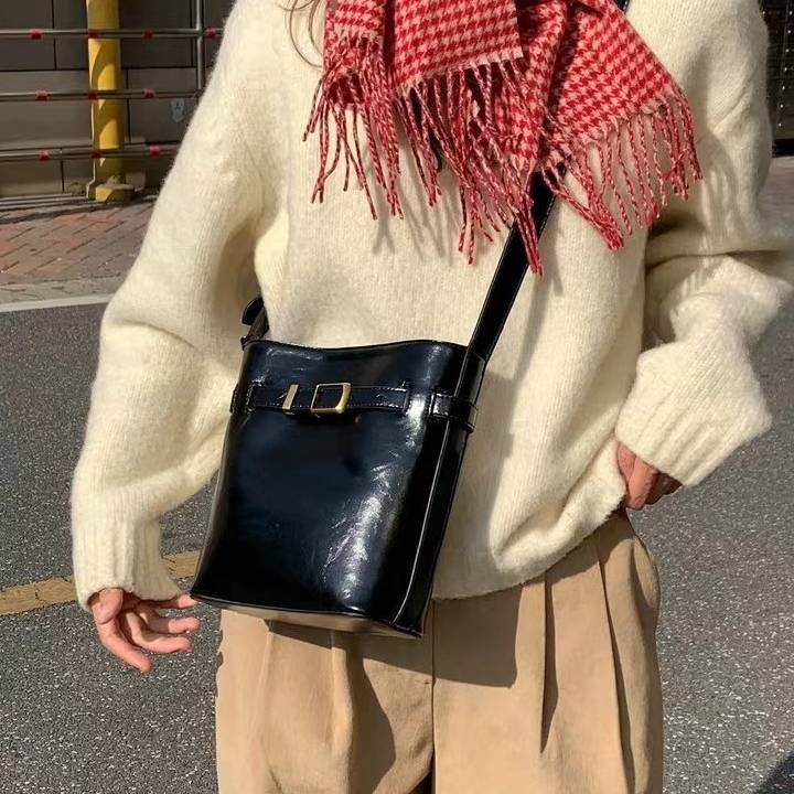 ヴィンテージレザーバッグ バケツ型ショルダーバッグ レディースショルダー バッグ ショルダーバッグ ブラック ブラウン 高級感 韓国風ファッション 大人可愛い 人気アイテム 秋冬 春コーデ K-B0209