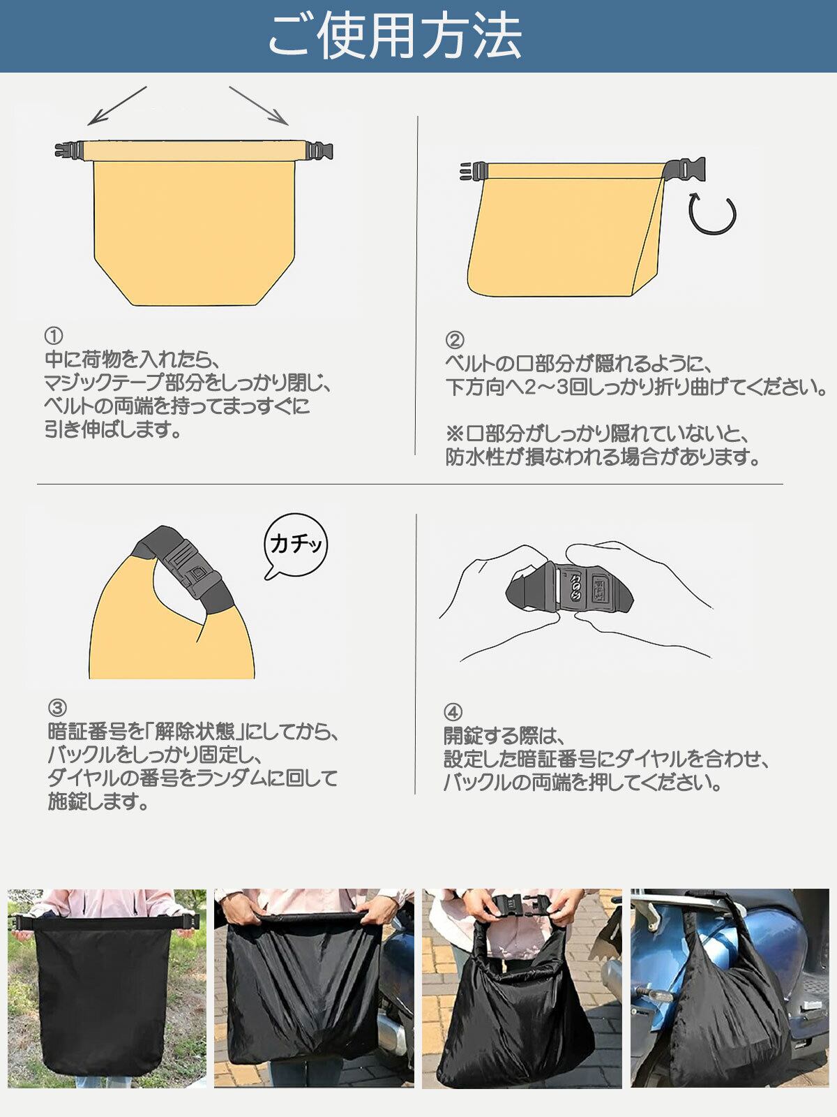 ヘルメットバッグとしてだけではなく買い物した物や貴重品を入れてひったくり防止対策など幅広くお使いいただけます。