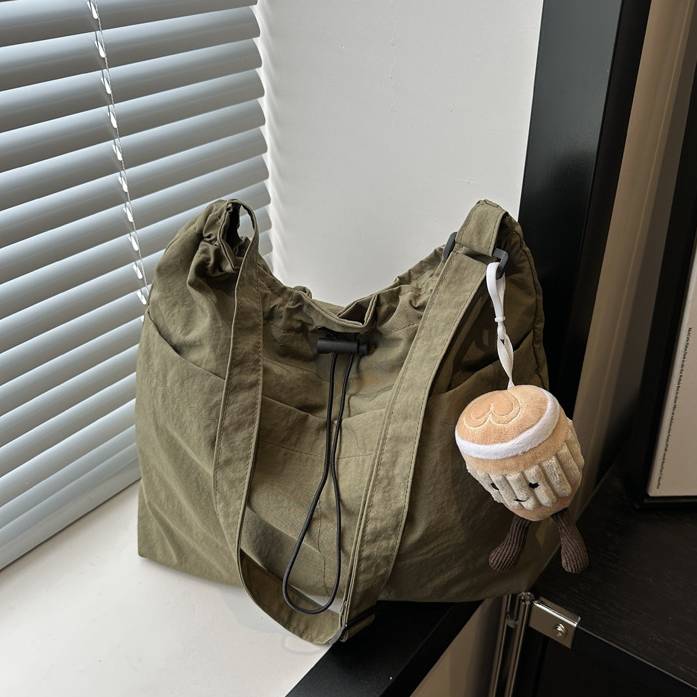 ナチュラルな風合いと程よいカジュアルさが魅力の、巾着タイプのショルダーバッグ。軽量かつ大容量設計で、デイリー使いからちょっとしたお出かけまで幅広く活躍します。シンプルなデザインながら、外ポケットや調整可能なショルダーストラップが機能性も抜群。