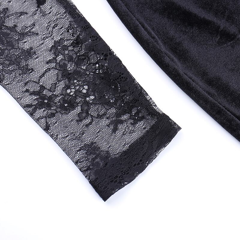 商品名:ベロア ロングドレス レーススリーブ シースルー エレガントドレス