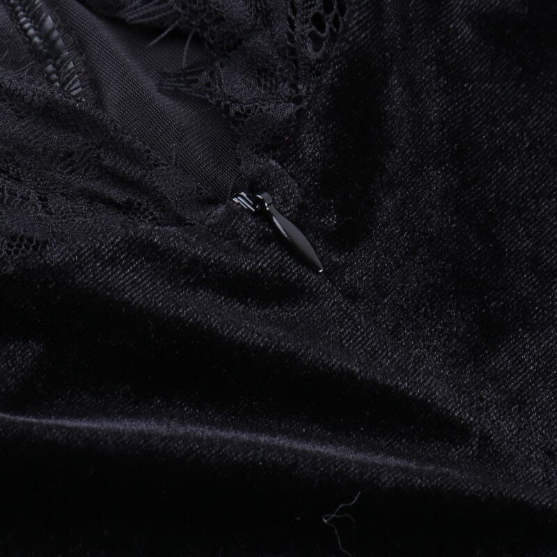 繊細なレースと上質なベロア素材が織りなす高級感あふれるロングドレス。