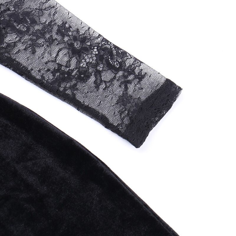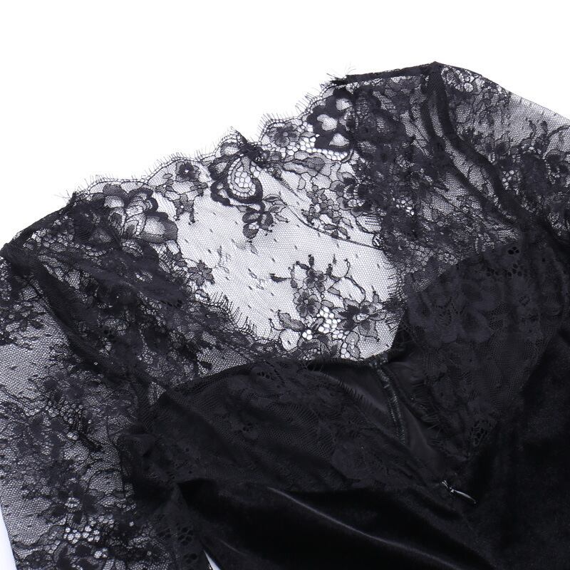 商品名:ベロア ロングドレス レーススリーブ シースルー エレガントドレス