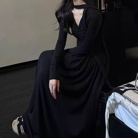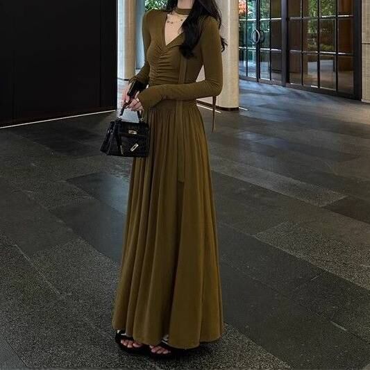 ロング丈 ワンピース 秋冬ワンピース エレガントワンピース ロングスカート レディース ドレス 上品 きれいめ 大人可愛い ブラック カーキ ワンタイプ エレガント C-OSS0234