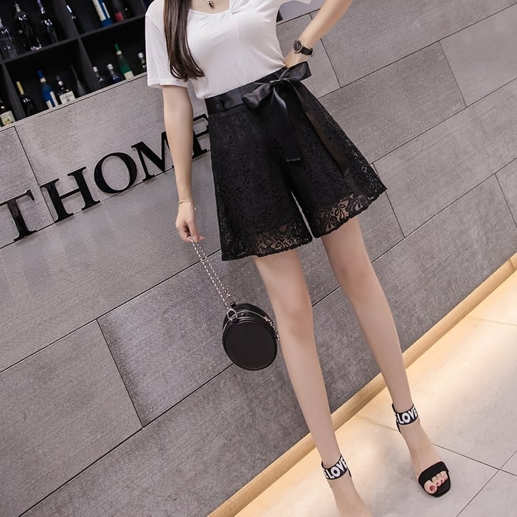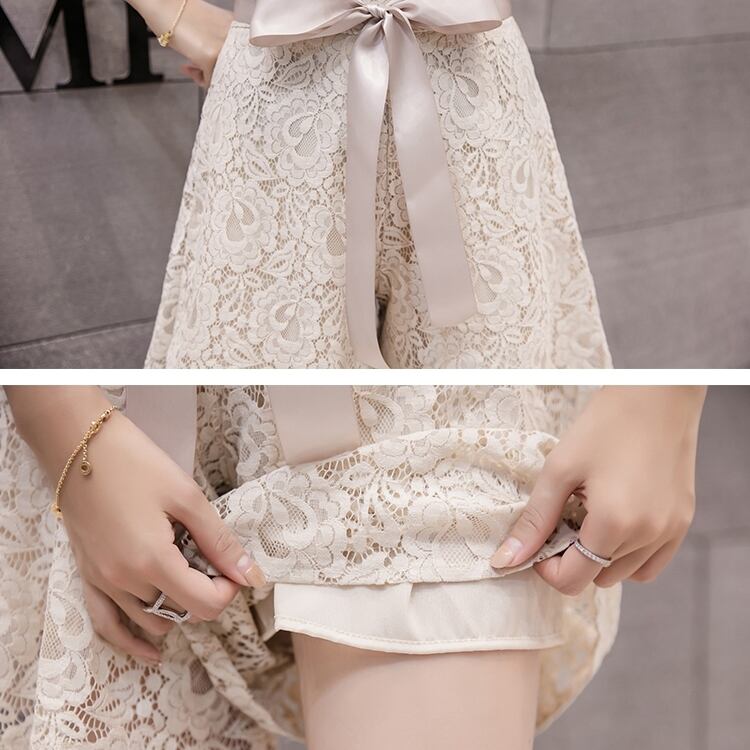商品名:総レース ショート丈 ハイウエスト リボン キュロットパンツ