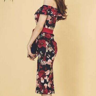ワンピース レディース ドレス 花柄ワンピース フラワー柄ワンピース 花柄ドレス オフショルダー 花柄 パーティー 春 夏 春夏 ワンピースドレス パーティードレス キャバドレス タイトドレス タイトワンピース ブラック 黒 ナイトドレス ドレスワンピース C-OSS0016