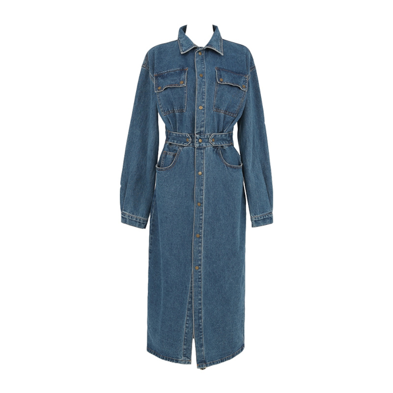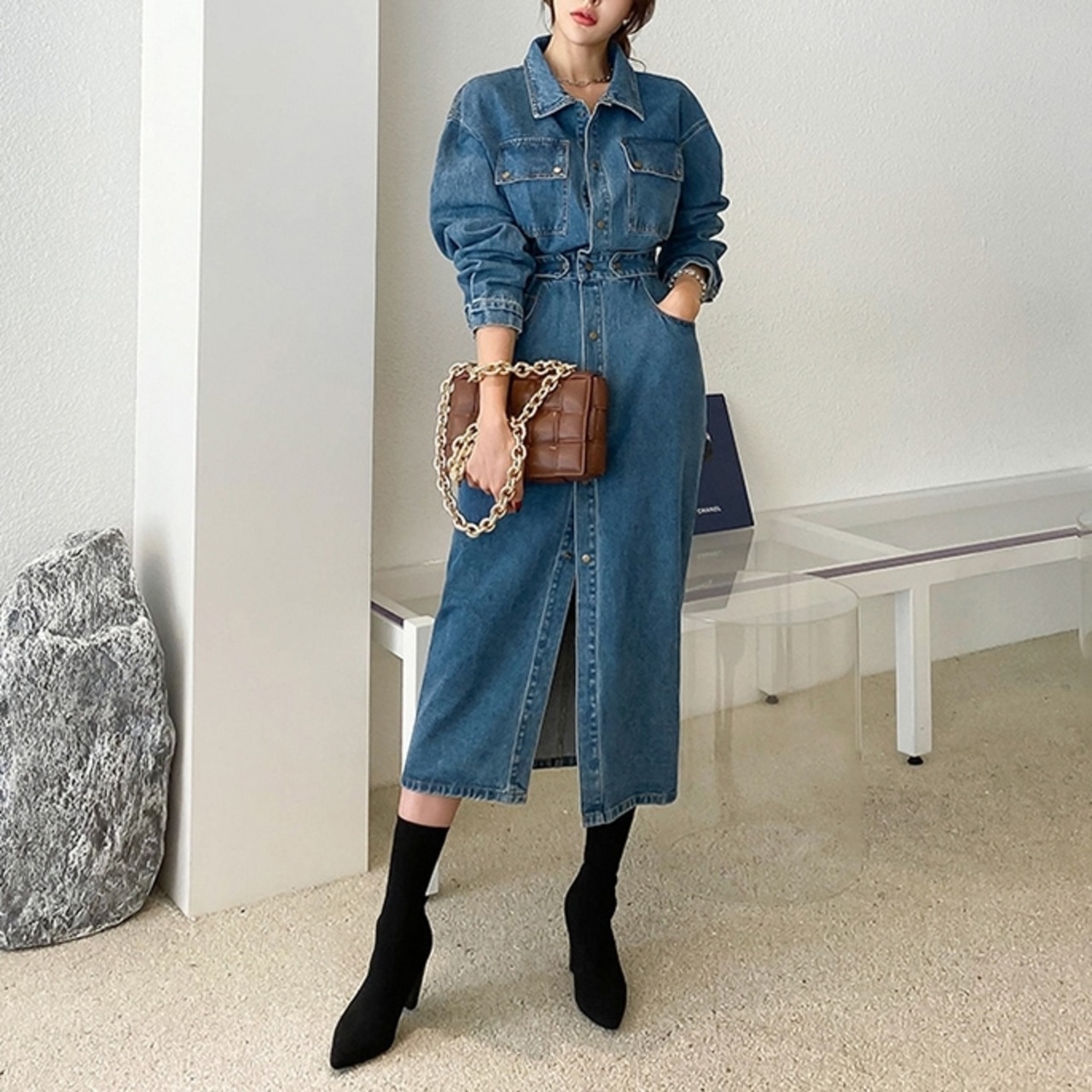 ワンピース ミモレ レディース デニム タイトワンピース ミディアムワンピ ロングワンピース ひざ丈 ひざ下 秋 冬 秋冬 春 アウター ロング丈 タイト デニムワンピース C-OAW1039