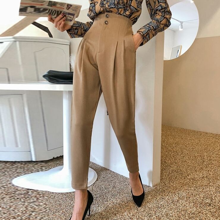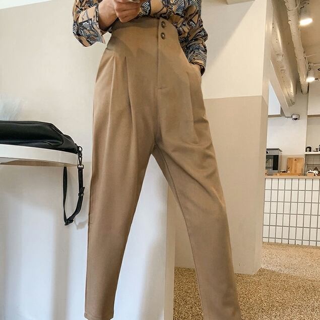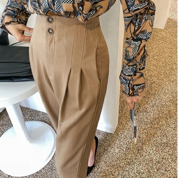 ハイウエスト ボタン テーパードパンツ C-PSS1004