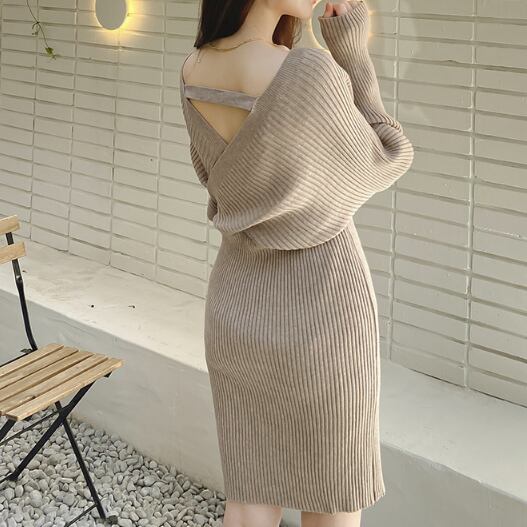ワンピース レディース 春夏 秋冬 春 夏 秋 冬 黒 タイトワンピース ニットワンピース 長袖 カシュクール リブ ニットワンピ リブニット 長袖ワンピース ミディアムワンピース きれいめ 韓国 タイトニットワンピース ミモレ ひざ丈ワンピース ンプル 韓国ファッション OL カジュアル Vネック 深Vネック ベージュ シンプル 10代 20代 30代 40代 C-OSS0078