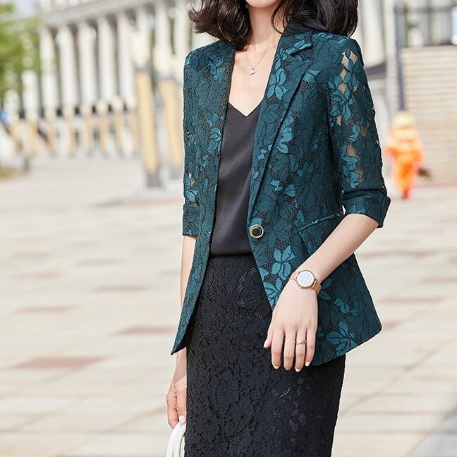 ジャケット レディース 春夏 秋冬 春 夏 秋 冬 黒 レースジャケット スリム 総レース タイト 七分 半袖 透け感 大人 女性用 韓国 ジャケット 上着 スーツ 羽織 カジュアル きれいめ オフィス OL オフィスカジュアル 結婚式 パーティー お呼ばれ グリーン ブラック S M L xl 2xl 3xl 4xl 10代 20代 30代 40代 C-JAW1019
