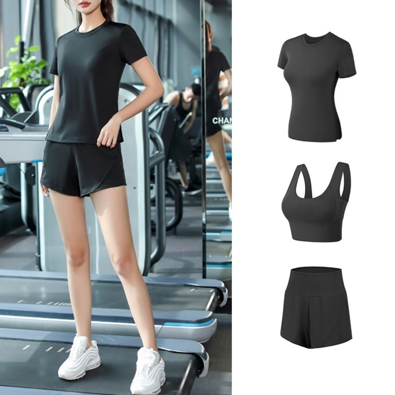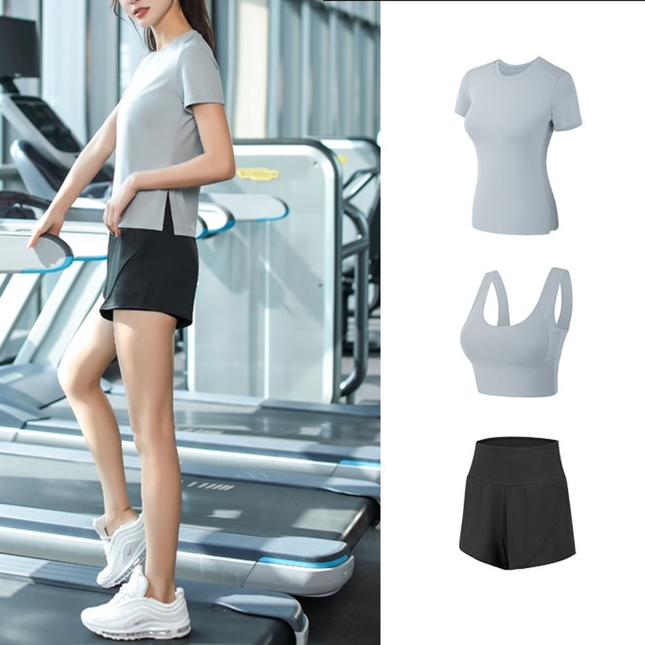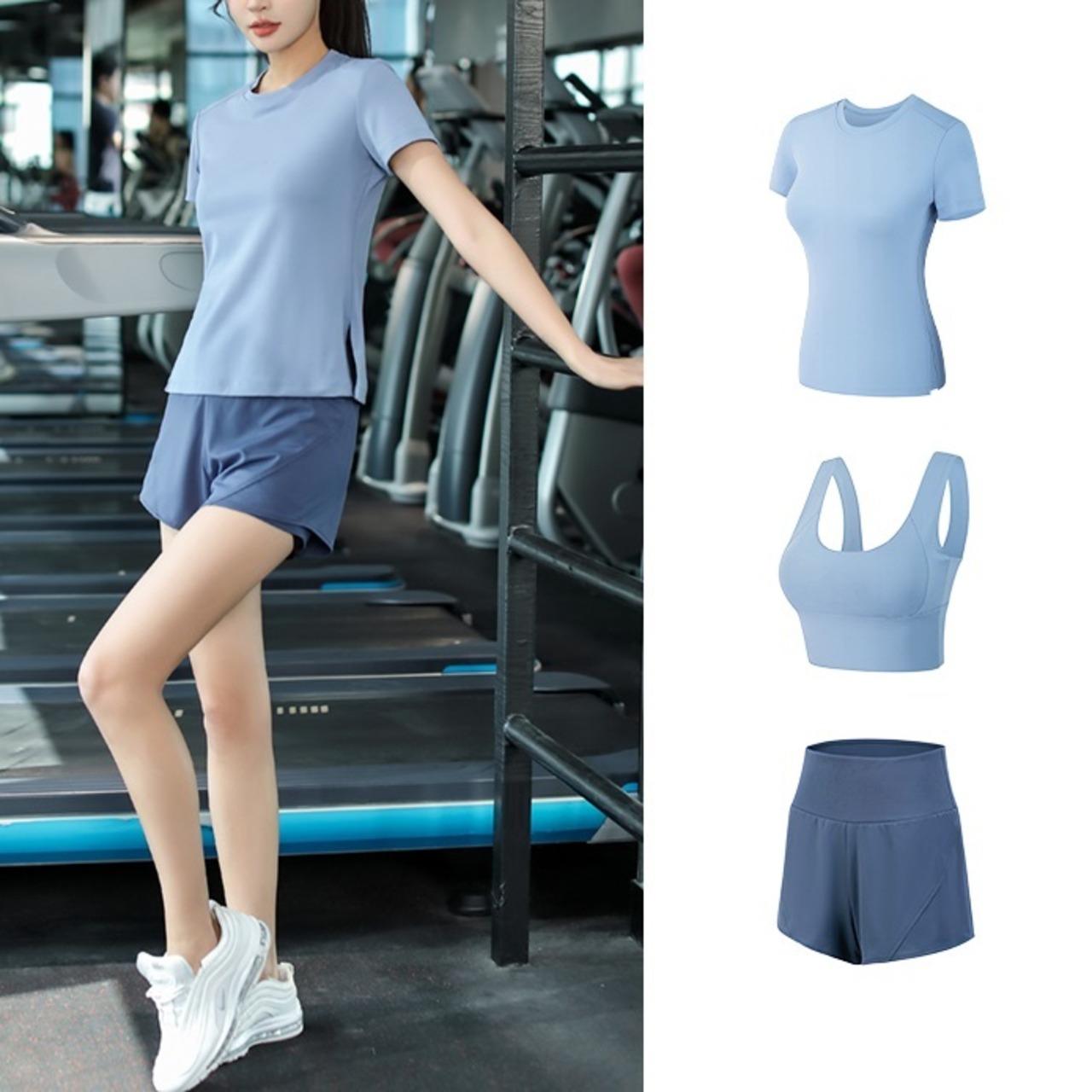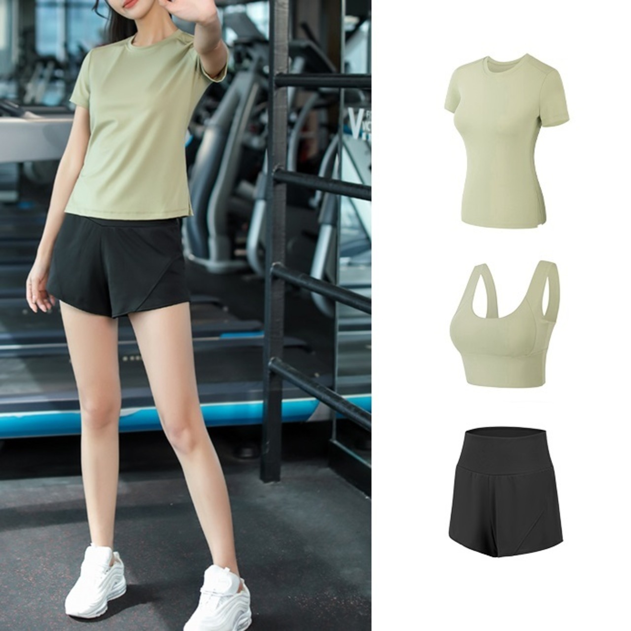 トップス、スポーツブラ、ショートパンツの3点セット!