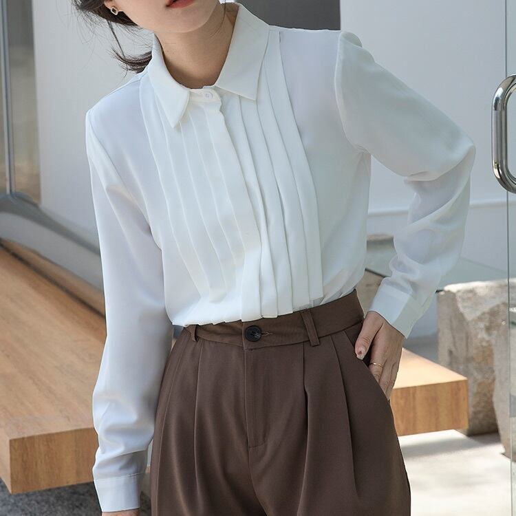 ブラウス レディース 春夏 秋冬 春 夏 秋 冬 白 黒 シャツ トップス 無地ブラウス 長袖 トップス プリーツ チュニック 無地 フロントプリーツ きれいめ プリーツシャツ シフォン プリーツブラウス シンプルシャツ 白シャツ 黒シャツ ホワイト ブラック オフィスカジュアル スーツ 韓国 ゆったり ブラウスシャツ シンプル 長袖シャツ ブラウスシャツ シャツブラウス オフィス カジュアル OL 上品 大人 S M L XL 2XL 20代 30代 40代 50代 C-TSS0061