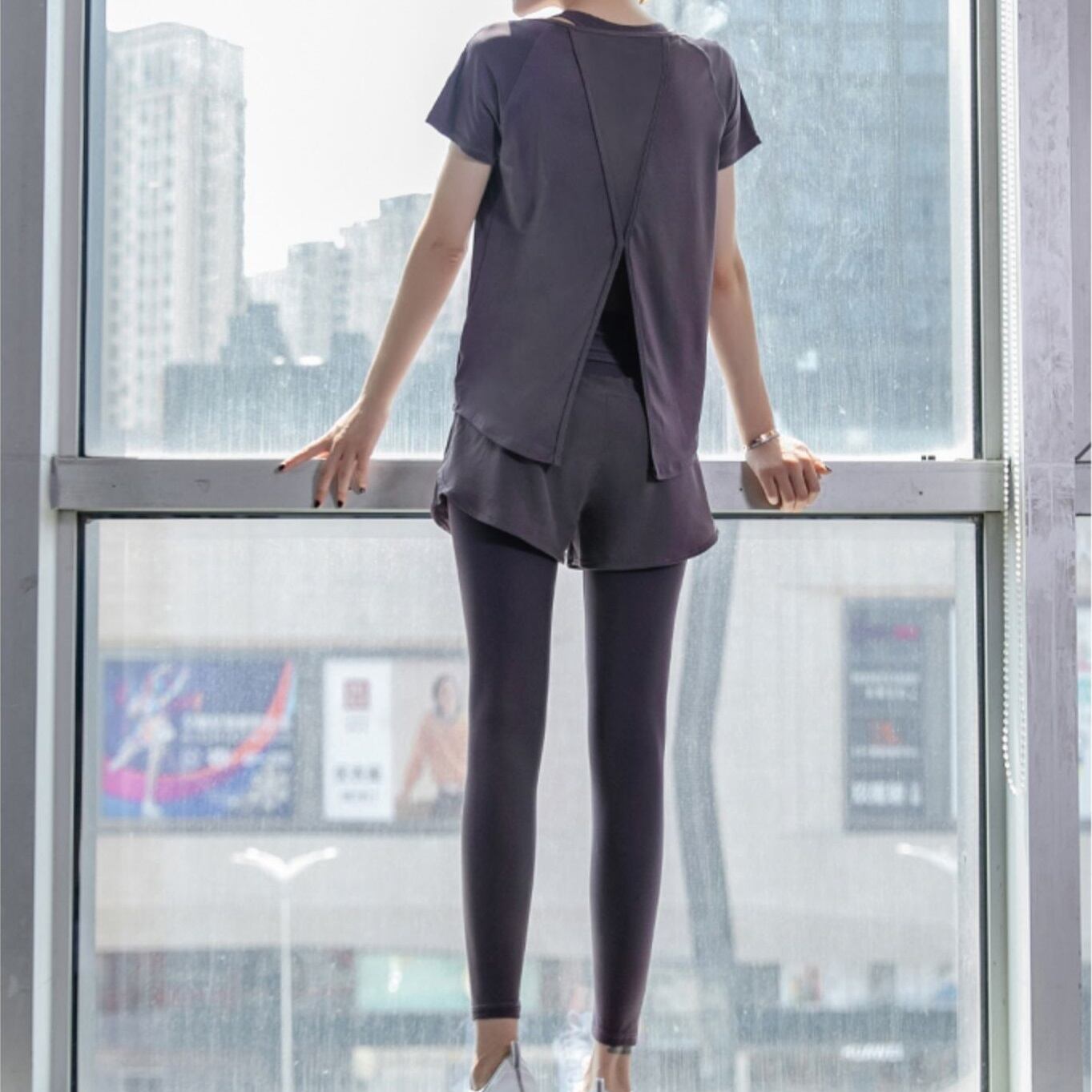 半袖トップス、レギンス、ポーツブラの3点セット!