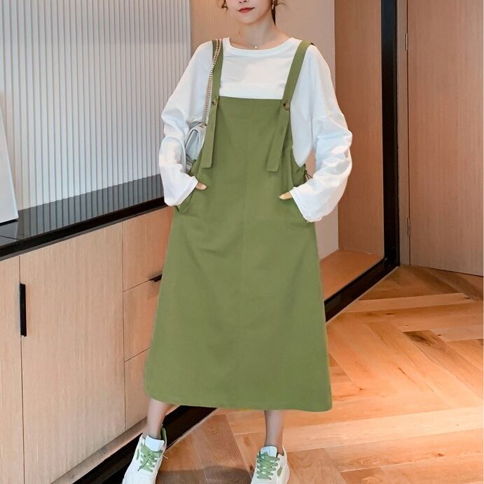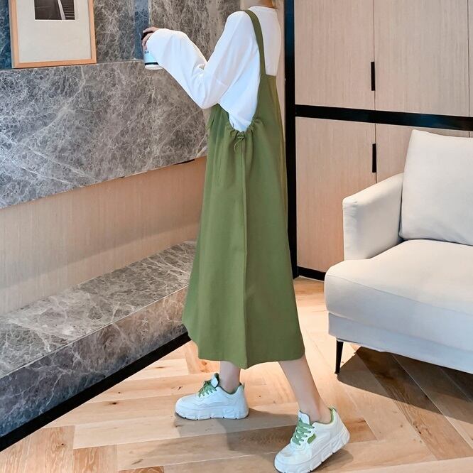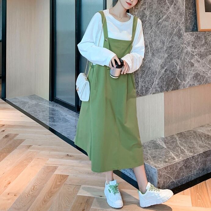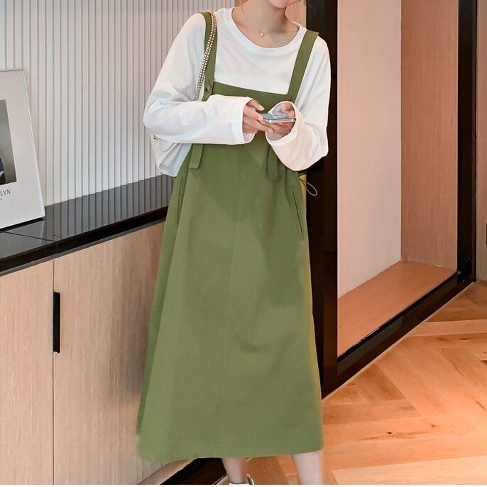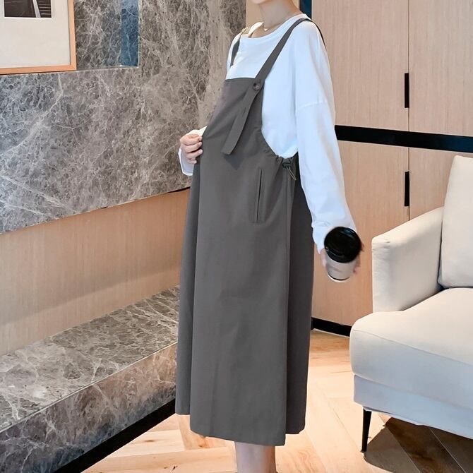 ジャンパースカート レディース 春夏 秋冬 春 夏 秋 冬 スカート ジャンスカ オーバーオール サロペット ひざ下 ミモレ丈 OL きれいめ マタニティ 妊婦 ゆったり 体型カバー トップス カットソー 長袖 Aライン ジャンパースカート ワンピース オールインワン ミモレ丈 ロング ロンパース 韓国 ファッション 韓国風 上品 グレー カーキ 大人 カジュアル 10代 20代 30代 40代 C-WAW1065