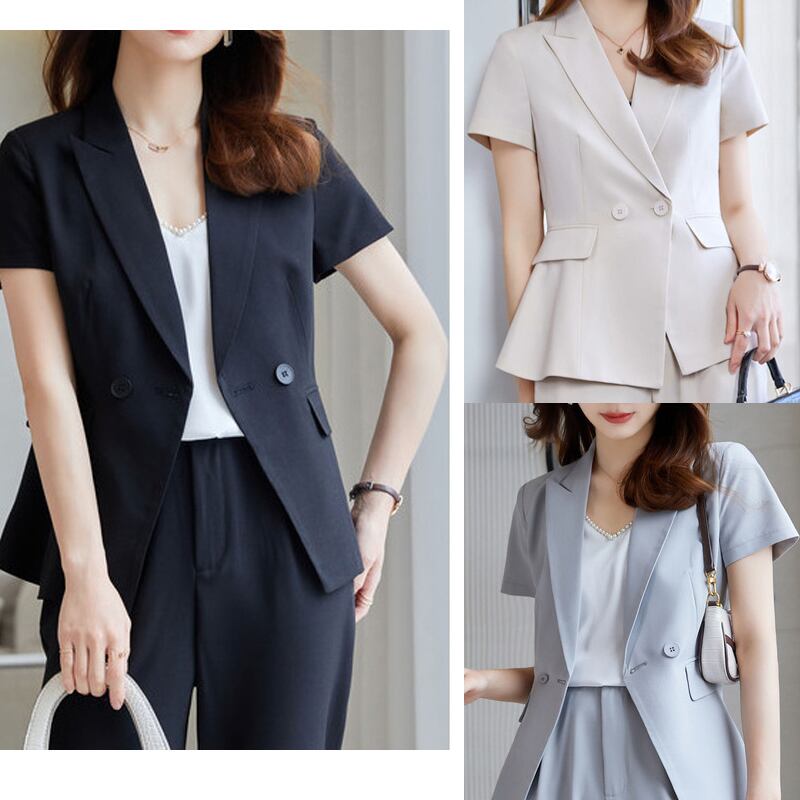 商品名:シンプル 半袖ジャケット&パンツ パンツスーツ セットアップ