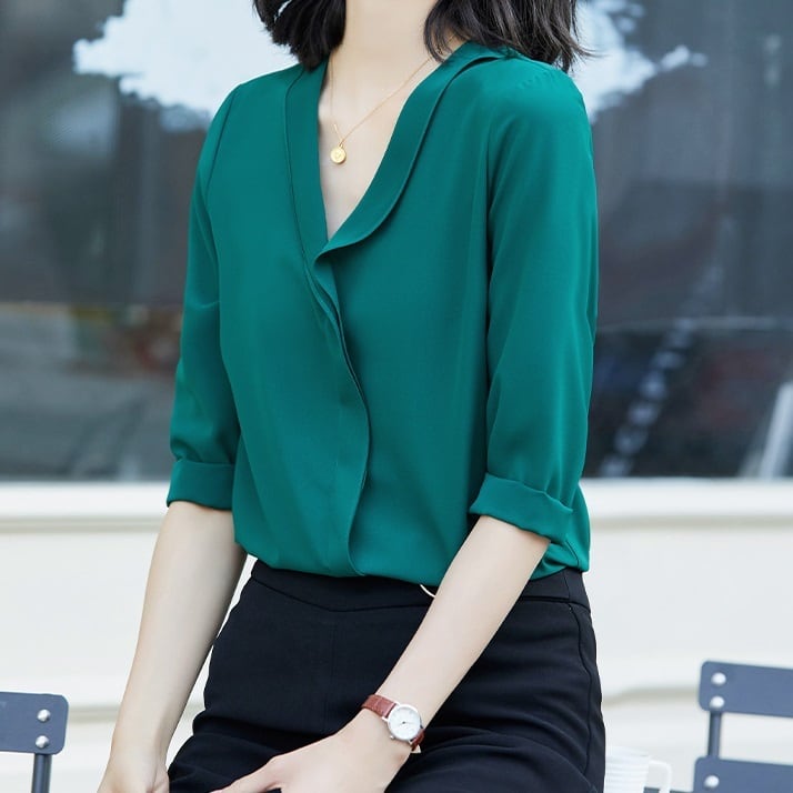 魅力の7分袖ブラウス。