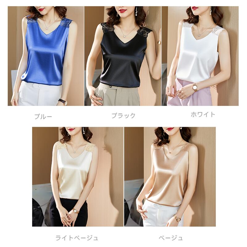 ノースリーブトップス レディース 春夏 秋冬 春 夏 秋 冬 黒 白 サテン トップス タンクトップ インナー ノースリーブ Vネック サテン シルク 光沢 シルクサテン ベージュ ホワイト ライトベージュ ブルー ブラック お呼ばれ 結婚式 演奏会 二次会 S M L XL 2XL 3XL 4XL オフィス カジュアル OL 上品 大人 10代 20代 30代 40代 C-TSS0046