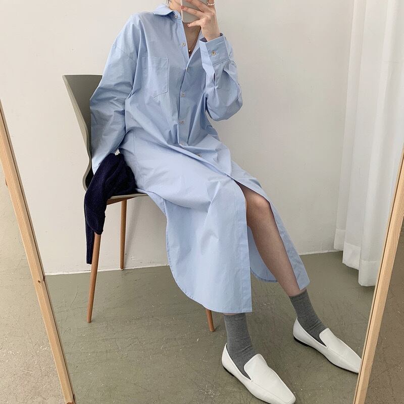 ロングワンピース レディース 春夏 秋冬 春 夏 秋 冬 白 黒 シャツワンピース ゆったり ロングシャツ ライトアウター ロング マキシワンピース 無地 楽チン ホワイト ライトブルー オフィスカジュアル きれいめ OL 10代 20代 30代 C-OSS0027