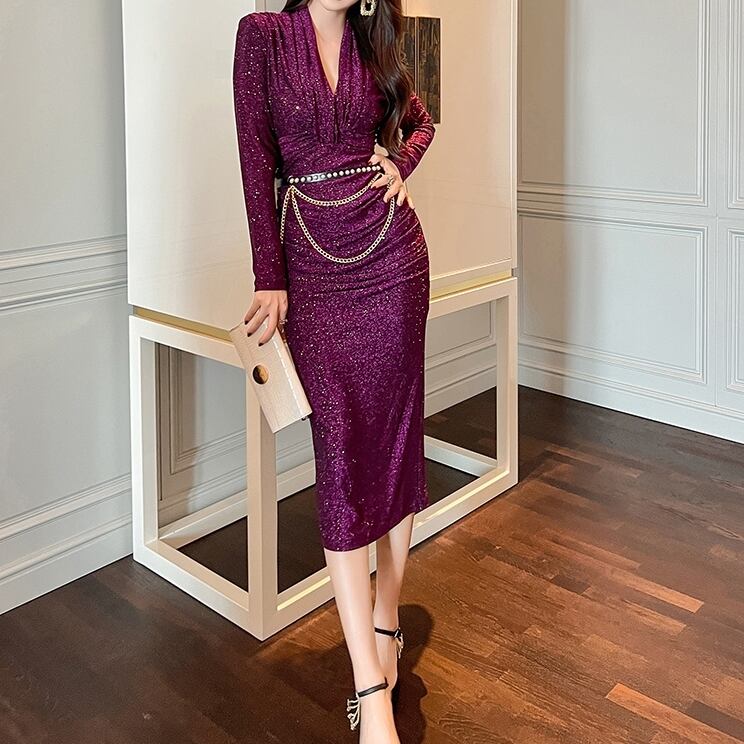 ドレス レディース 春夏 秋冬 春 夏 秋 冬 黒 タイトドレス ワンピース ラメ ミモレ丈ドレス きらきら ラメドレス ひざ丈 Vネック ドレスワンピース ミディアムドレス タイトワンピース ショートドレス ナイトドレス ロングドレス ヒザ下ワンピース キャバドレス キャバ嬢 韓国 ワンピドレス ブラック パープル ワンピースドレス OL 結婚式 パーティー お呼ばれ パーティードレス パーティドレス S M L 10代 20代 30代 40代 C-OSS0091