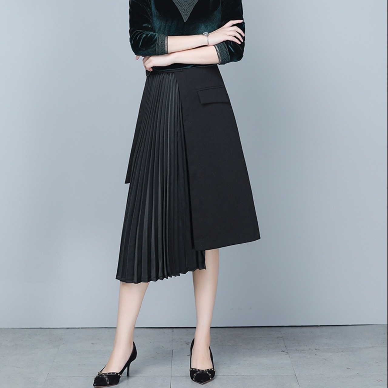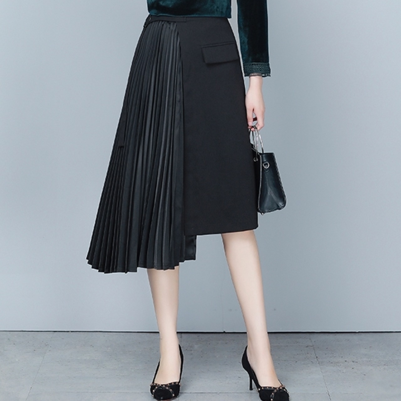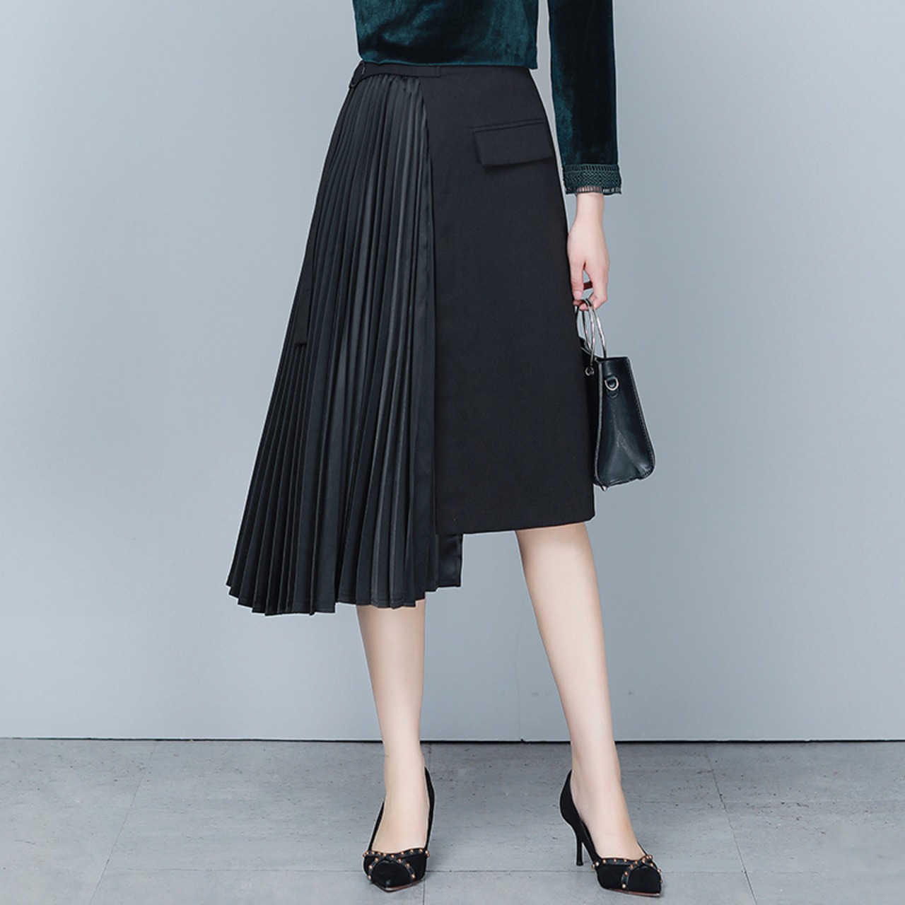 スカート レディース 春夏 秋冬 春 夏 秋 冬 黒 プリーツスカート ミディアム丈 プリーツ アシンメトリー ミモレスカート ひざ丈スカート モード 韓国 ファッション きれいめ オフィスカジュアル 上品 切り替え ミディアム ひざ下 ひざ丈 ブラック オフィス カジュアル OL 上品 大人 10代 20代 30代 40代 C-SAW0020