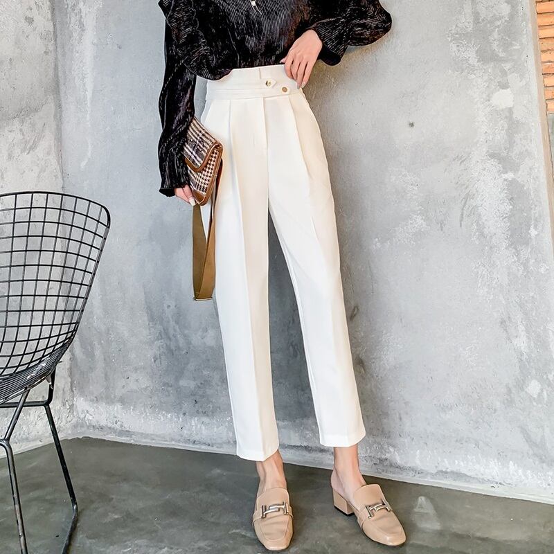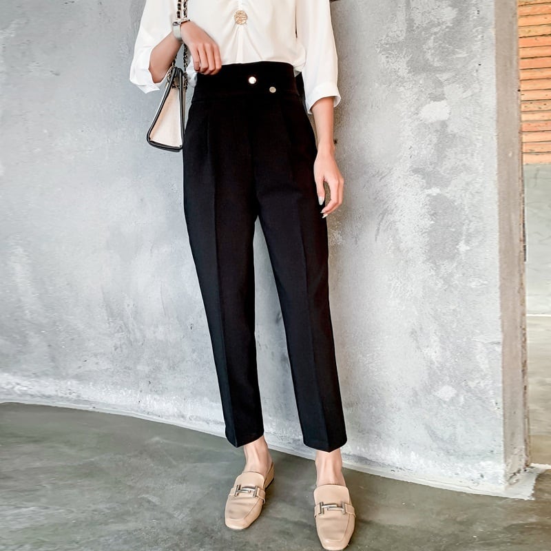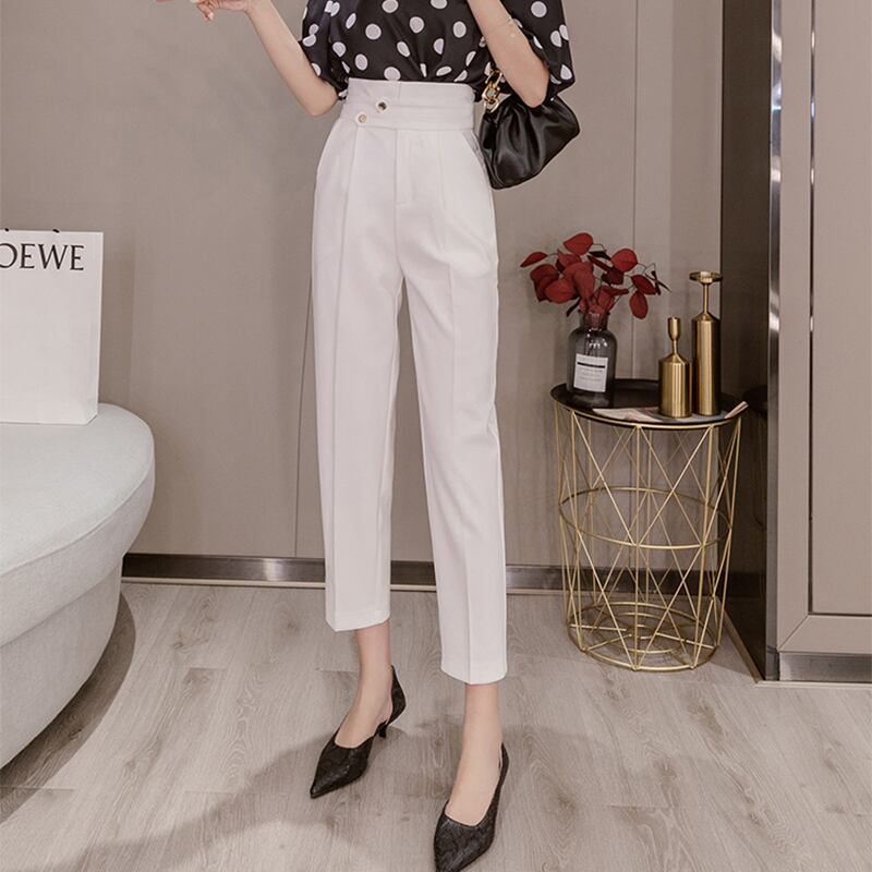 テーパードパンツ レディース 春夏 秋冬 春 夏 秋 冬 黒 ボトムス パンツ クロップドパンツ ハイウエスト シンプル クロップド丈 きれいめ 大人 ブラック アイボリー 韓国ファッション OL カジュアル オフィスカジュアル オフィス OL ズボン スーツ C-PSS1019