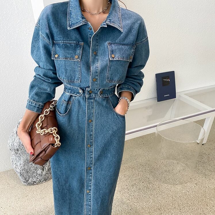 ワンピース ミモレ レディース デニム タイトワンピース ミディアムワンピ ロングワンピース ひざ丈 ひざ下 秋 冬 秋冬 春 アウター ロング丈 タイト デニムワンピース C-OAW1039