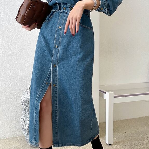 商品名:ロング丈タイト デニムワンピース