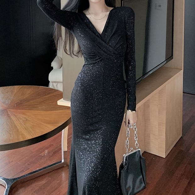 ロング丈のスカートとラメでパーティーシーンにピッタリ。