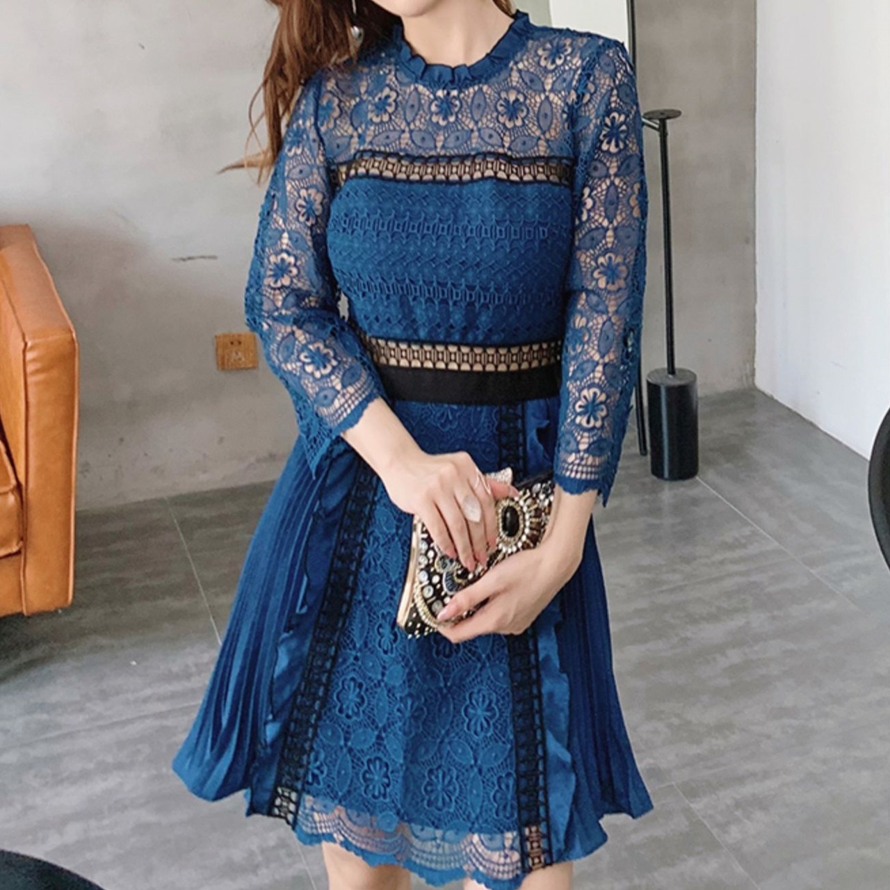 ドレス レディース ワンピース ドレスワンピース ワンピースドレス ミディアムワンピース Aライン 袖付きドレス 袖付きワンピース Aラインドレス プリーツワンピース ミニワンピース ひざ丈 結婚式 パーティードレス レース 7分袖 プリーツ Aラインドレスワンピース C-DSS1013