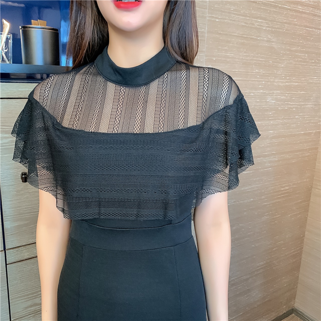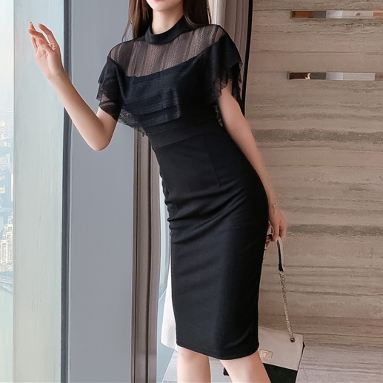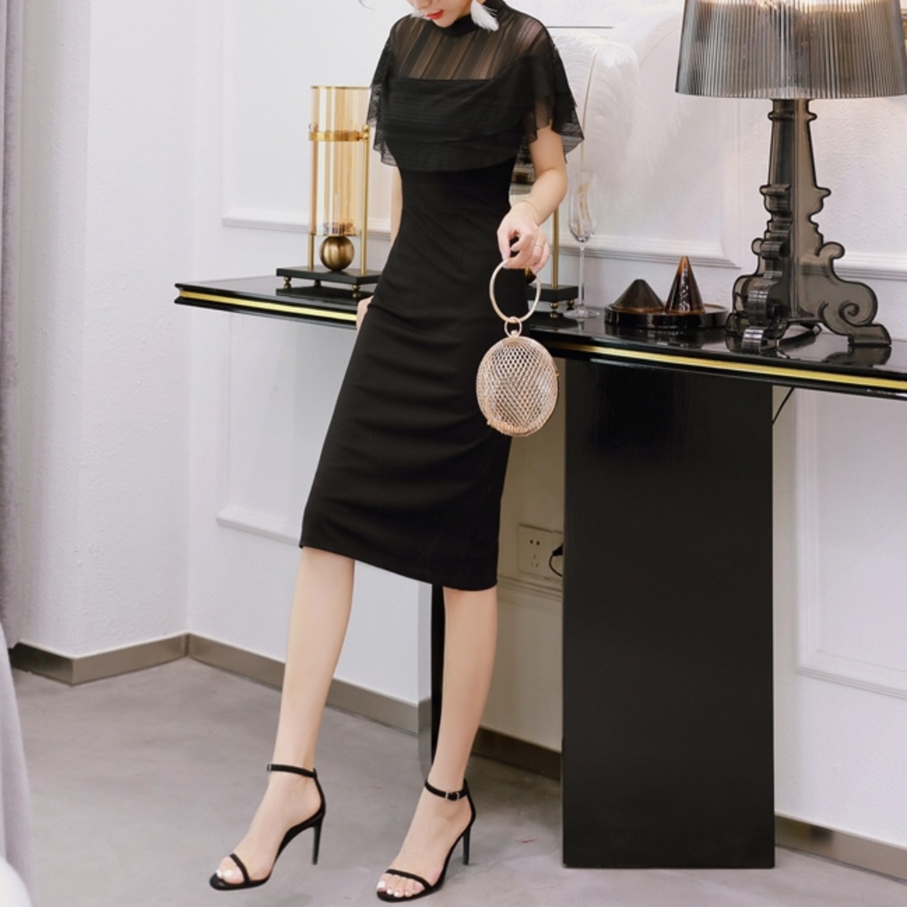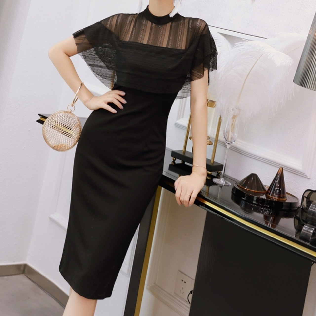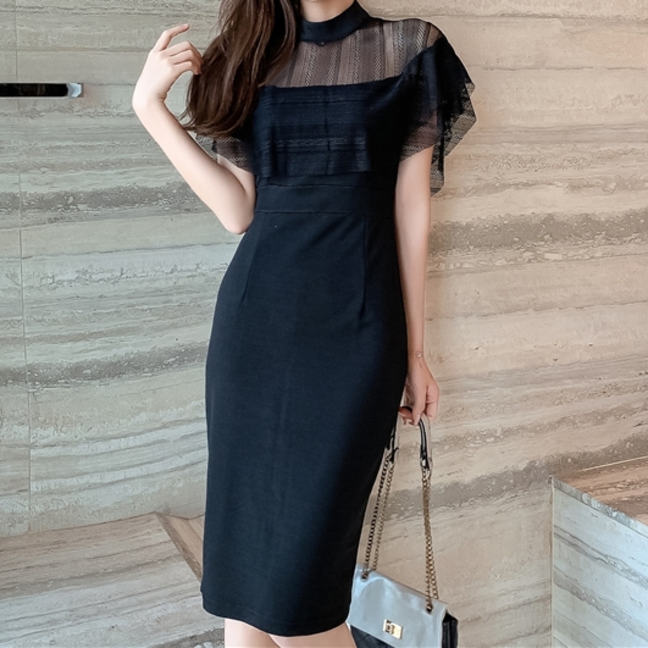 商品名:シースルー ケープスリーブ タイト パーティードレス