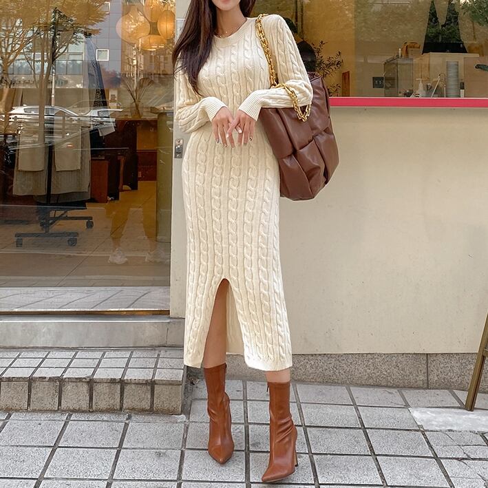 模様編み タイトニットワンピース C-OAW1022