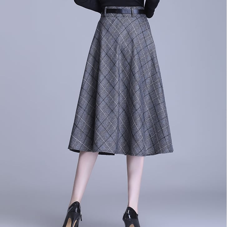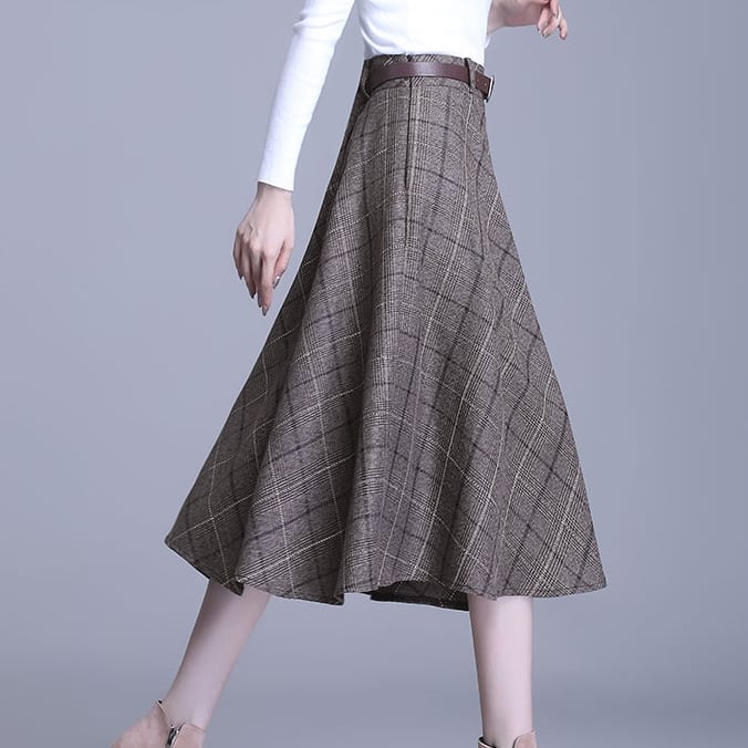 Aラインのチェック柄スカート。