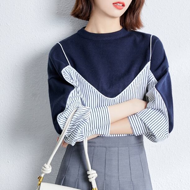 トップス レディース 春夏 秋冬 春 夏 秋 冬 ブラウス シャツ 長袖 ドルマン レイヤード 長袖トップス チュニック ストライプ キャミソール カットソー ストライプシャツ ネイビー グレー 韓国 ゆったり 長袖トップス オフィス カジュアル OL 上品 大人 10代 20代 30代 40代 C-TSS0047