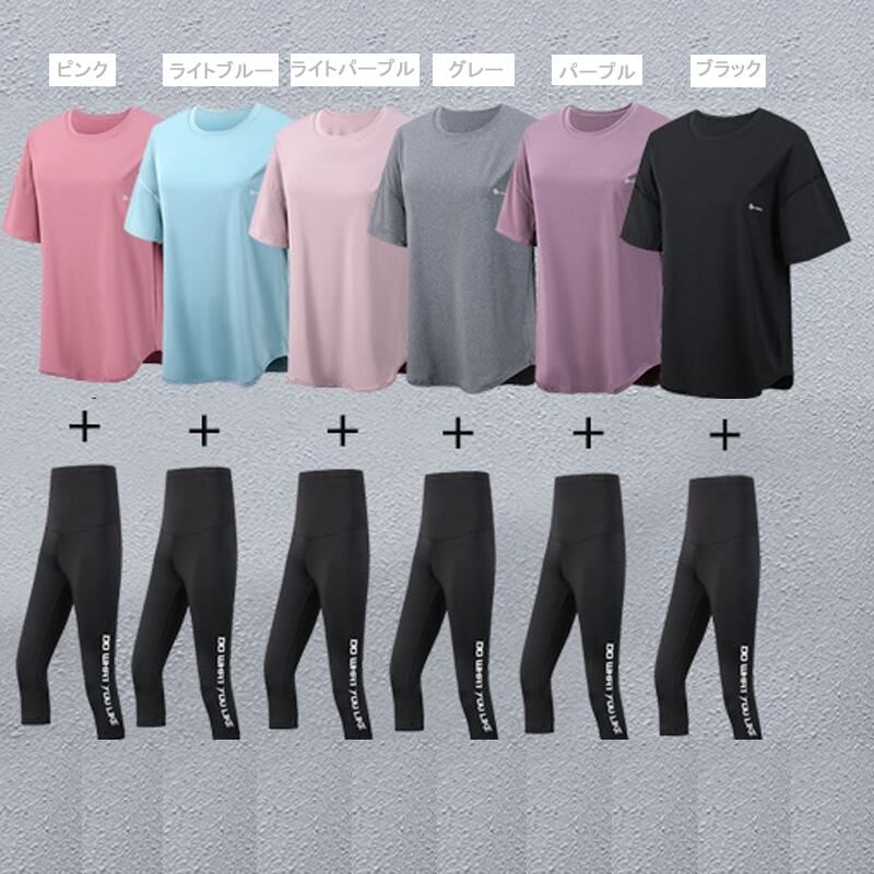 商品名:フィットネスウェア スポーツウェア ロゴ トップス レギンス 2点セット