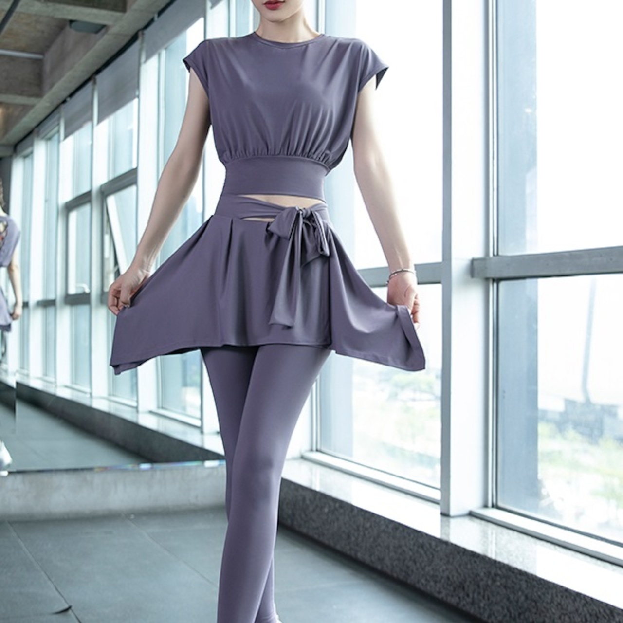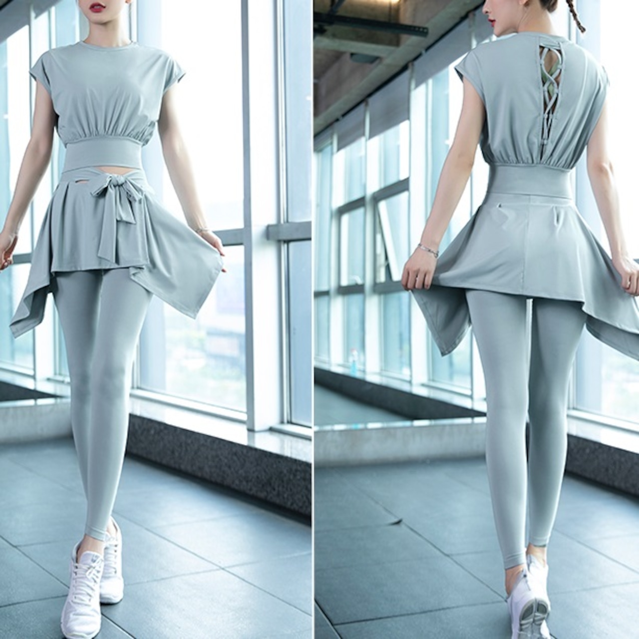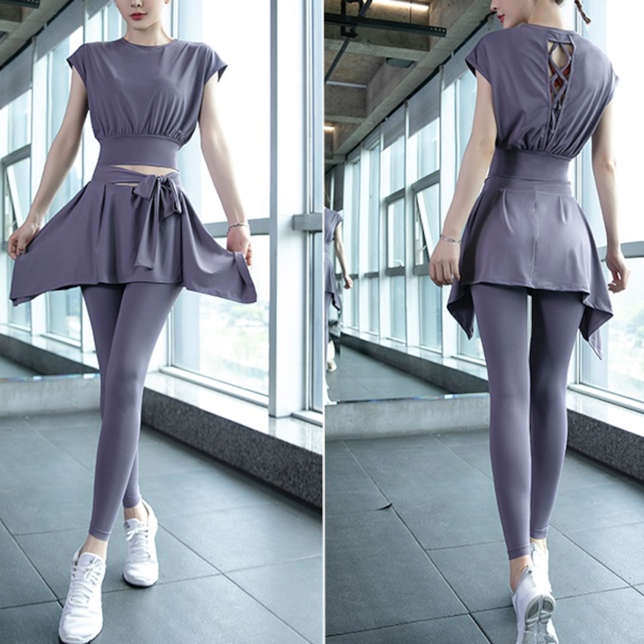 フィットネスウェア 2点セット レディース 春夏 秋冬 春 夏 秋 冬 ジムウェア ダンスウェア セットアップ 半袖 部屋着 パンツ ダンス スカッツ フリル スカート トップス レギンス ヨガウェア フィットネス ヨガレギンス ジム ダンスパンツ ヨガパンツ スパッツ ブルーグレー パープルグレー ライトグリーン ブラック ダイエット トレーニングウェア スポーツウェア ランニングウェア カジュアル OL 上品 大人 20代 30代 40代 50代 C-F0019