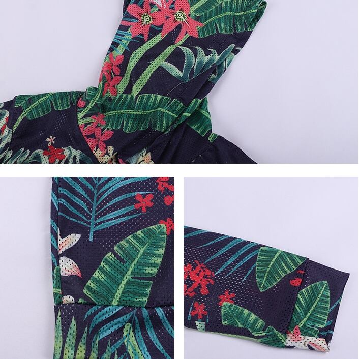 鮮やかなボタニカル柄の大人のスポーティスタイル。