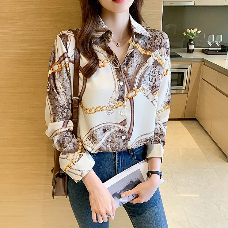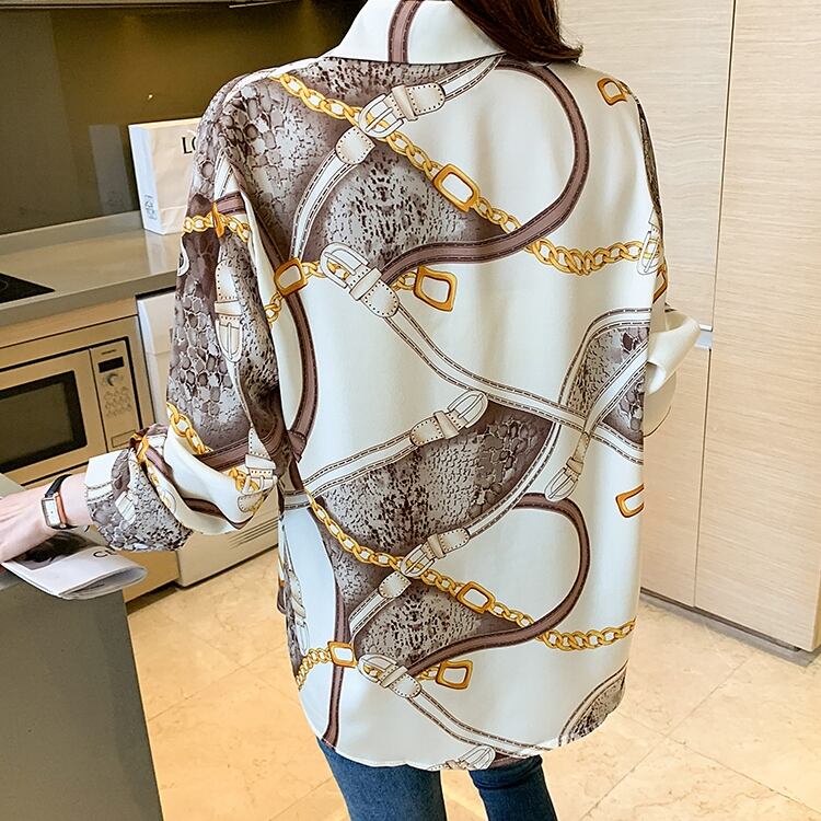 商品名:チェーンデザイン サテン 長袖 ブラウス シャツ