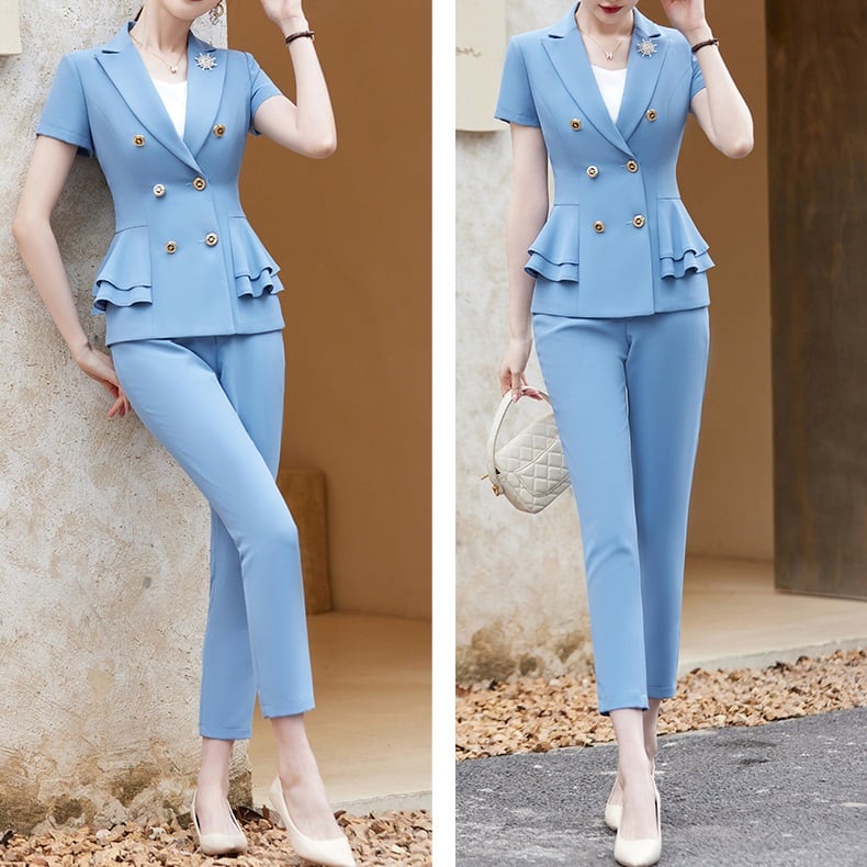パンツスーツ レディース 春夏 秋冬 春 夏 秋 冬 黒 スーツ 上下セット 2点セット ジャケット パンツ セットアップ ダブルボタン セットアップスーツ 半袖 ダブルスーツ タイト ツーピース ビジネススーツ 金ボタン パンツスーツ 7分丈 レディーススーツ 韓国ファッション 大きいサイズ 韓国 オフィス OL オフィスカジュアル ビジネス 結婚式 パーティー お呼ばれ ブラック ピンク ライトブルー S M L XL 2XL 3XL 4XL 10代 20代 30代 40代 C-WAW1081