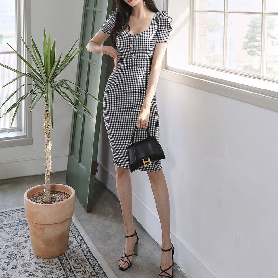 ワンピース ドレス レディース 春夏 秋冬 春 夏 秋 冬 黒 ドレスワンピース ドレス タイトワンピース 半袖 パフスリーブ ギンガムチェック ひざ丈 スリット タイトドレス タイトドレス ワンピドレス スクエアネック ミモレ丈ワンピース OL エレガント フォーマル 大きいサイズ きれいめ タイト ドレスワンピース お呼ばれ 韓国 ファッション オフィスカジュアル 韓国風 キャバドレス ナイトドレス ナイトワンピ 上品 ブラック 大人 カジュアル 10代 20代 30代 40代 C-OSS0112